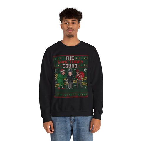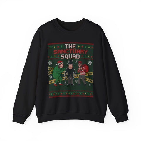 A cozy, characterful crewneck sweatshirt. The front shows “The Sanctuary Squad”. Soft yet substantial, the midweight cotton-poly blend and classic crew neckline make it a go-to layer for cool evenings, rehearsals, convention runs, or low-key family gatherings. Thoughtful construction (double-needle stitching, tear-away label) keeps it comfortable and durable through repeated wear and washes. Responsible sourcing and OEKO-TEX dyes give it an ethically mindful footprint.
